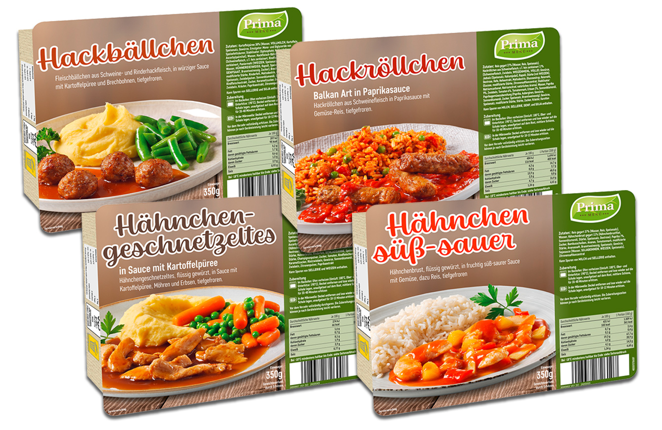 Das Sortiment erstreckt sich über Aufläufe, Menüs, Snackfood, Gerichte mit Nudeln, Kartoffeln oder Reis, vegetarische und vegane sowie Bio-Gerichte. Unsere TK-Fertiggerichte bieten wir in unterschiedlichen Verpackungsvarianten an. Wir haben Menüschalen für Einzelportionen in Ein- und Zweikammerschalen oder Mehrportionsschalen im ½ Gastronorm-Format.